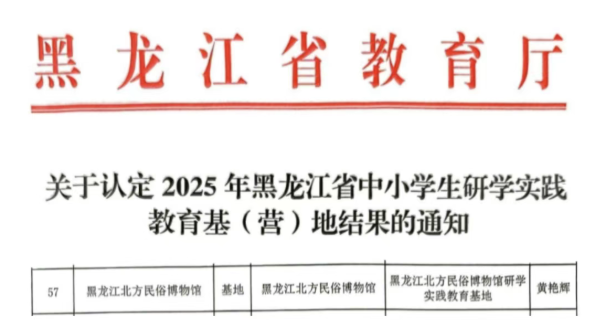 喜报!黑龙江北方民俗博物馆获评2025年省级中小学生研学实践教育基地![]()